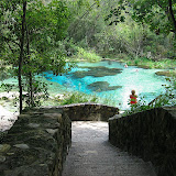 Then I walked down to the Blue Hole. THis spring is 40 ft deep and pumps out 16 million gallons of water at day. The water is a constant 72 degrees F. (22 degrees Canadian) When you swim out over the spring the force of the water coming up pushes you to the side. My friend Tom from Boston and I were here in April just after my birthday. The water was about 2 feet higher and there was a big black snake sunning itself on a bush next to the spring. Neither the bush or the snake were in evidence this time. THe water was wonderful. It’s crystal clear and a blue color. You can see ll the way down to the bottom of the spring 40 feet below and see the fish swimming around. It’s a magical place. Soon there were other people around so I get back on the road and rolled into St. Pete to my little house under the big tree at 6 pm.