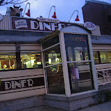 I sleep until 5 am then I am up so I drive into Albany to the Miss Albany Diner. When the Mad Chef arrives I have some of his homemade English bangers(sausages) and blueberry pancakes. I hang out and drink hot chocolate and read how to work my new phone, while I am waiting for it to get late enough to start phoning friends. I get a hold of Dana. She is moving to Florida and wants help packing up her studio. So I drive to her house in Troy and we have hot chocolate and a talk about the stock market with her friend Rhonda’s 16 year old son. He is interested in math and does pretty well with the concept of the stock market. Alphonso is a good kid. Then Dana and I drive to her studio. It’s the bottom floor of a house and it is full to the rafter with stuff! We wade in a start a garage sale corner and a trash pile. We stop for lunch and drive over for a salad on River street near her old store. It’s a Mediterranean place and the salad is great. Lots of fresh greens, tomatoes, cucumber, chicken breast and pine nuts with a very lemony but subtle dressing. Yumm. Then I drive over to Albany and have drink with my friend Tom at the new Brown Derby Restaurant. THey did a great renovation of a beautiful old building. After I drive out to Latham to see my friend. Michael and his wife Holly and sons John and David.